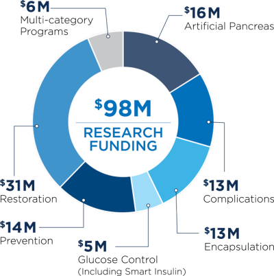 According to the JDRF website (http://jdrf.org/about-jdrf/fact-sheets/research-funding-facts/) this is what the money you raise goes too!